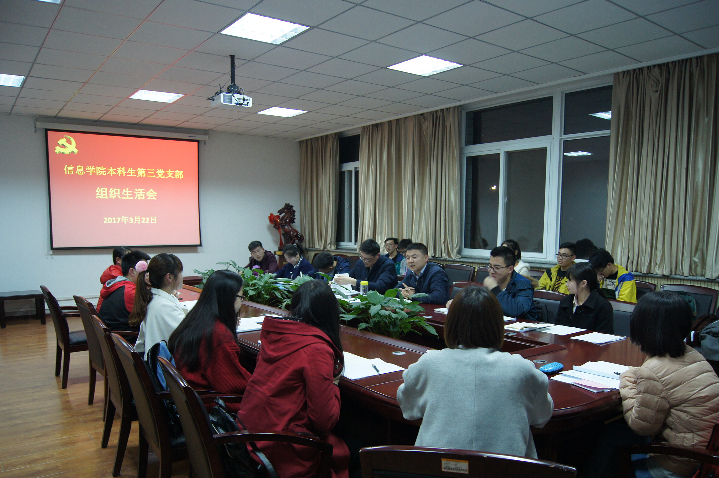 2017年3月22日晚七点,本科生第三党支部在成人影视片 216会议室召开专题组织生活会。会议由支部书记程玉锋老师主持,党委书记党青出席会议并讲话。