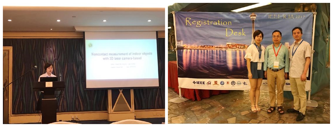 会上,范馨云结合论文,就利用IFM O3D303三维摄像机进行室内物体非接触式测量的新方法作全英文大会报告并与同行专家、学者进行了深入探讨。该论文中提出测量的方法,可通过大量球体点云数据拟合修正函数,对获取测量结果进行校正,以获取更为精准的数据,为我校秦川牛等牲畜体尺测量提供了有效技术支撑。论文由黄铝文副教授指导,并得到了学校教务处资助。