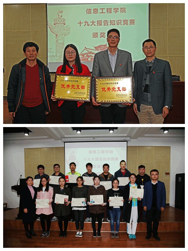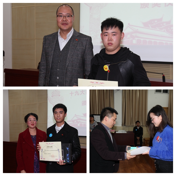 竞赛分为四个环节。第一个环节“先声夺人”,全员参与答题,每个支部选出了答题正确数最多的前三名进入第二个环节支部对抗赛。第二个环节“争分夺秒”,各支部代表队以抢答方式累计得分。竞赛过程中出现了分数相同的情况,张丽副教授现场出题加赛。最终得分前四的本科生第一、二、三党支部和研究生第三党支部代表队进入了下一环节。其中本科生第三党支部和研究生第三党支部表现突出,分别荣获“十九大报告知识竞赛优秀党支部”称号。