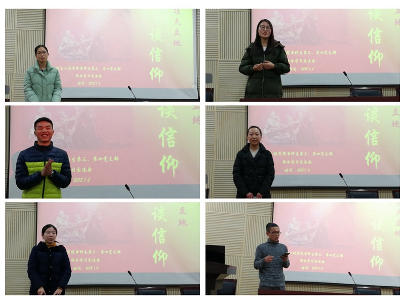 2018年1月4日晚19:00,成人影视片 本科生第三党支部、第四党支部联合举办《顶天立地谈信仰》读书交流会。交流会由本科生第三党支部书记程玉锋同志主持,两个支部50余人参加。