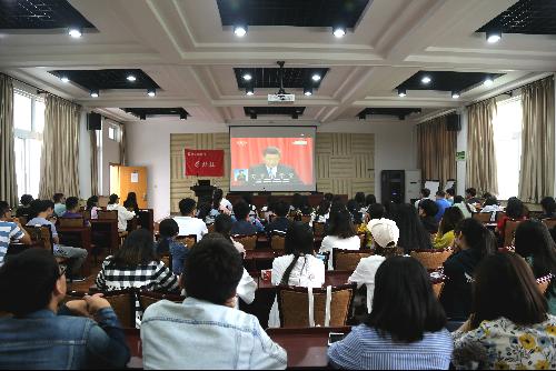 5月4日上午,成人影视片 全体师生党员、习近平新时代中国特色社会主义思想学习社全体成员齐聚一堂,集体观看纪念马克思诞辰200周年大会,并学习讨论习近平总书记在大会上的重要讲话精神。